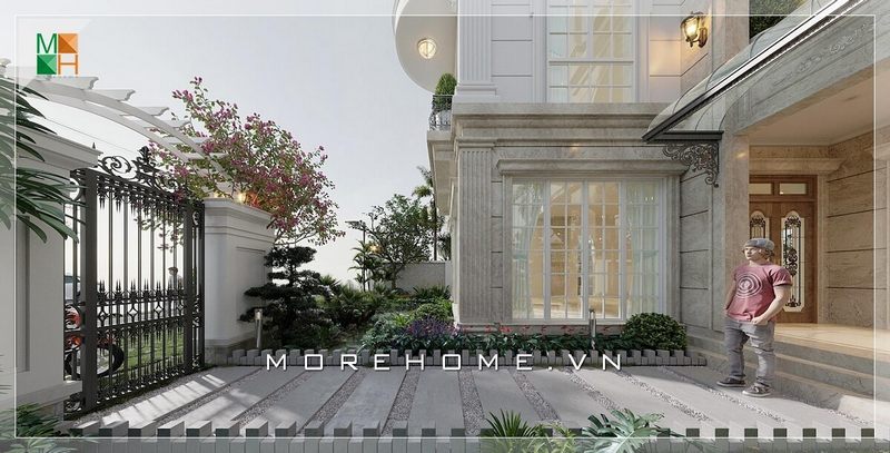 Khoảng sân trước nhà rộng rãi nối cổng với biệt thự, nhà phố đem lại cảm giác thoáng đãng và đầy cuốn hút.