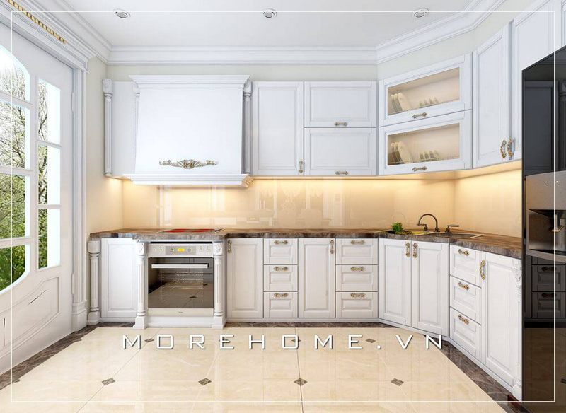 Thiết kế nội thất phòng bếp biệt thự tân cổ điển sang trọng, tiện nghi và đẳng cấp
