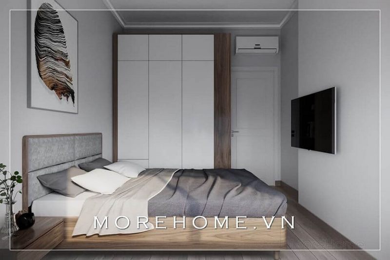 Thiết kế nội thất phòng ngủ chung cư hiện đại với đồ nội thất gỗ công nghiệp thiết kế đẹp mắt