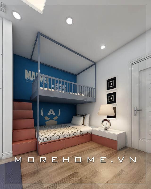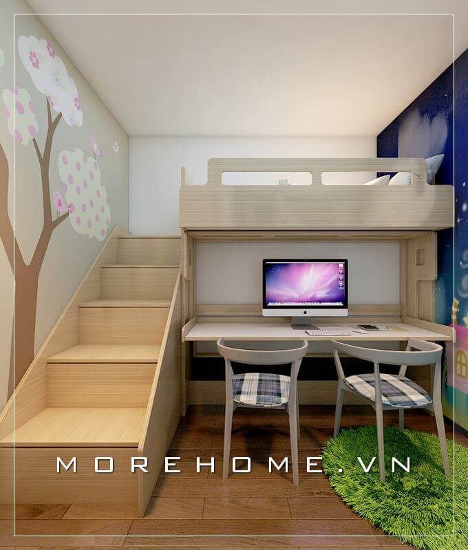 Nội thất phòng trẻ em đẹp, chiếc giường tầng đa năng kết hợp bàn làm việc hiện đại phía dưới là giải pháp hoàn hảo cho không gian phòng ngủ nhỏ