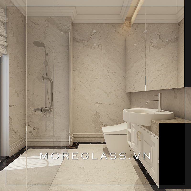 Nhà vệ sinh phòng ngủ được làm bằng kính rất sang trọng, biến căn phòng ngủ trở nên cao cấp hơn và hiện đại hơn.