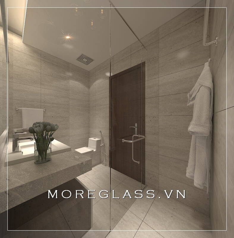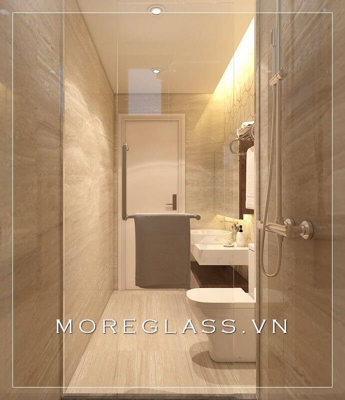 Mẫu thiết kế nhà vệ sinh hiện đại, gọn nhẹ cho căn hộ chung cư với nội thất và các thiết bị vệ sinh cơ bản.