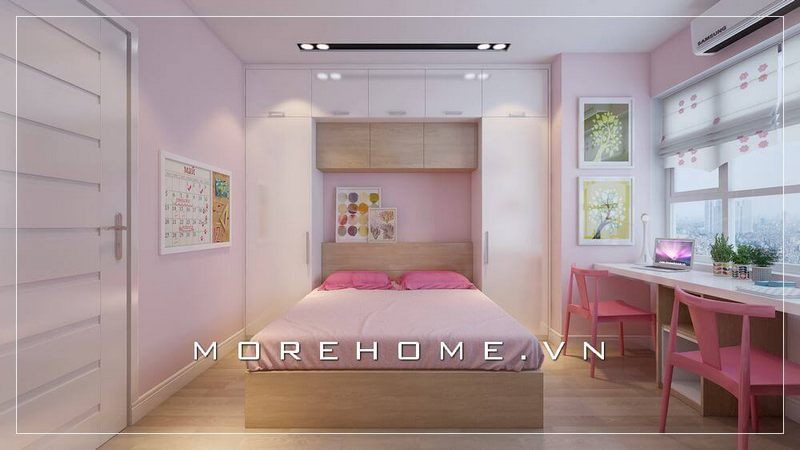 Để tạo độ thông thoáng và lấy ánh sáng tự nhiên cho phòng ngủ, thiết kế căn phòng với 2 cửa sổ lớn.